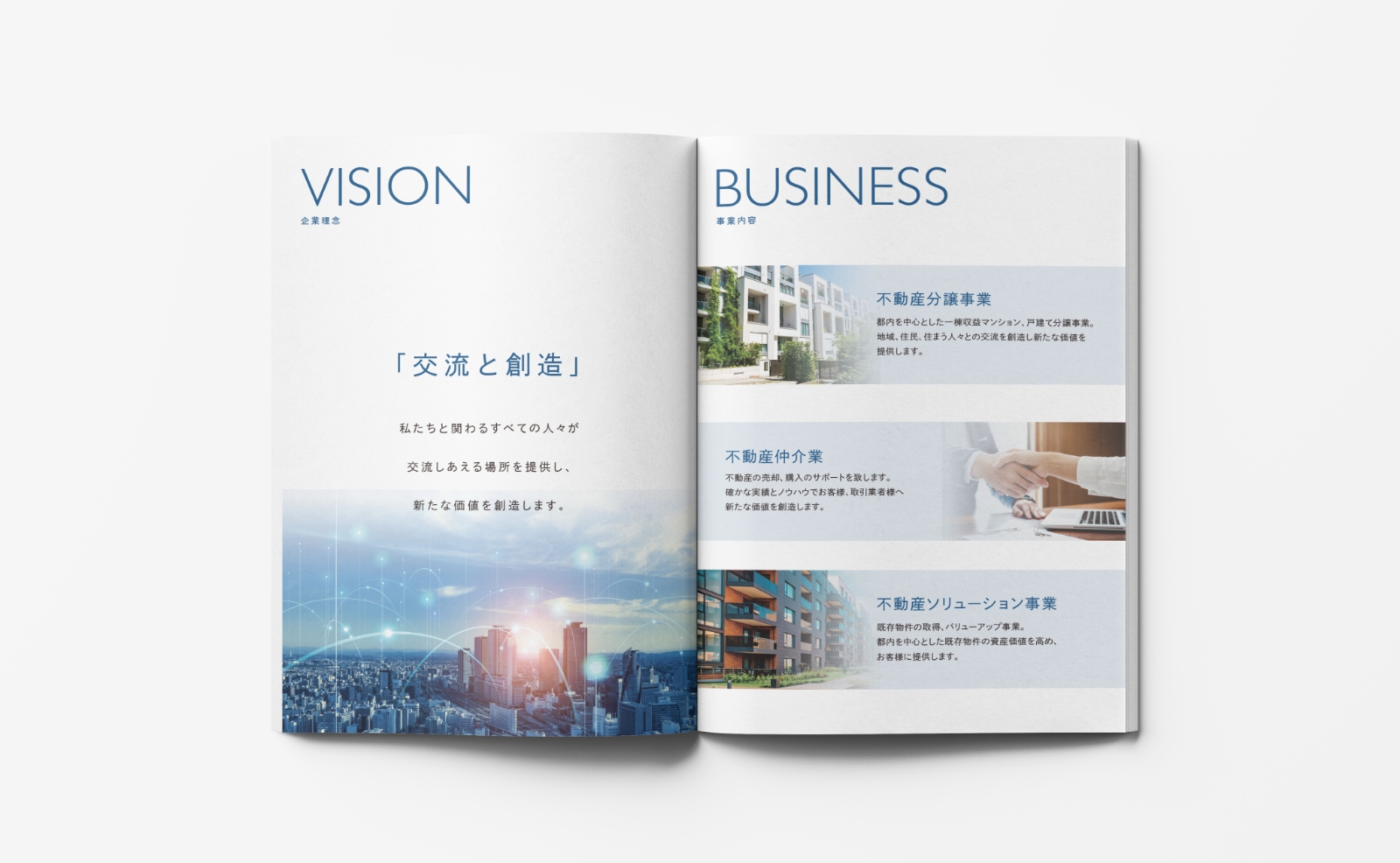 東京都港区で不動産事業を展開する企業様のロゴマーク・会社案内・ウェブサイトを制作致しました。 お客様、取引業者様、かかわるすべての人々が交流しあえる場所となるよう思いを込め、お名前の由来である「交差点」をモチーフに。 時代の流れに乗り、お客様へ常に最適なサポートをする姿を表現するため、スタイリッシュで現代的な仕上がりを心がけました。 コーポレートカラーにディープブルーを使用し、信頼感・誠実な姿勢を表現。